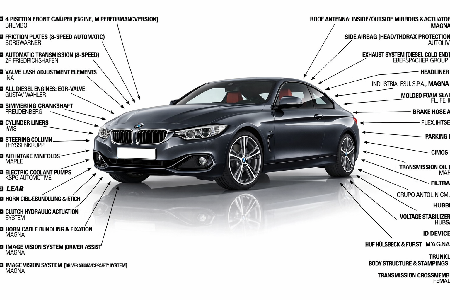 BMW parts are components used to maintain, repair, or upgrade BMW vehicles, including engines, gearboxes, brakes, electronics, and body panels.